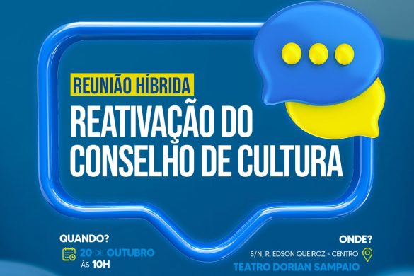 A Secretaria de Cultura e Turismo – Secult, convida os agentes culturais do Município, para participarem da Reunião de Reativação…