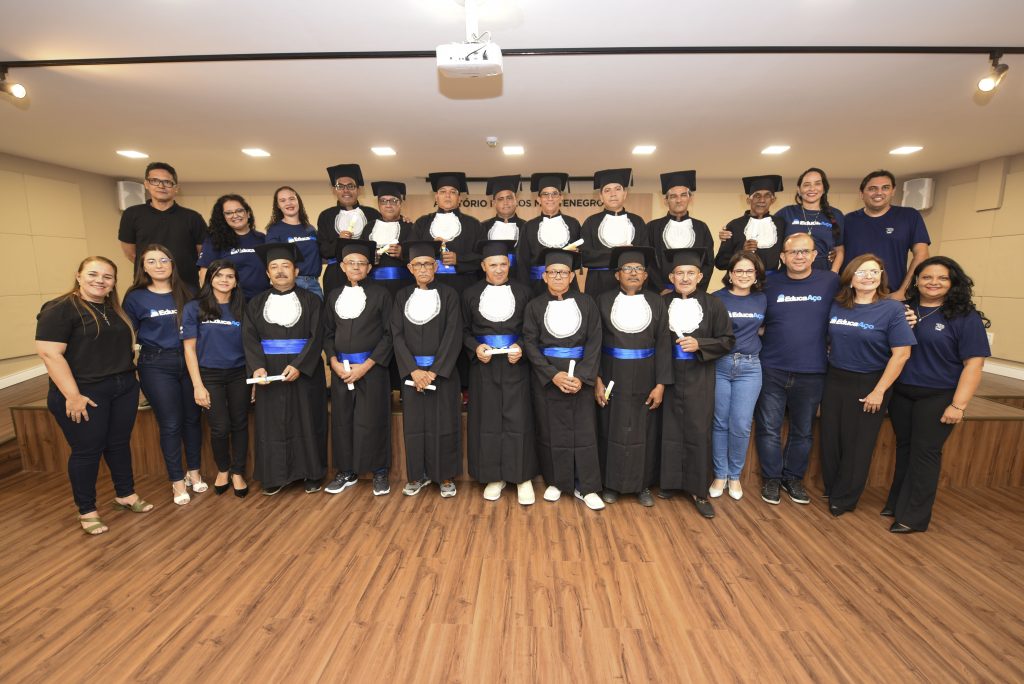 Para tentar mudar essa realidade, o Grupo Aço Cearense, em parceria com o Serviço Social da Indústria- SESI, realiza o Projeto EducaAço, que dá aulas e materiais escolares gratuitos para colaboradores que desejam voltar a estudar. Na noite do último dia 26, uma turma formada por 16 colaboradores celebrou a conquista e recebeu o diploma de alfabetização. O evento foi realizado no SESI da Av. João Pessoa, no bairro Damas, e contou com a presença de representantes do SESI, dos professores que ministram aulas no projeto, de gestores e colaboradores do Grupo Aço Cearense, de familiares dos formandos e de demais convidados.