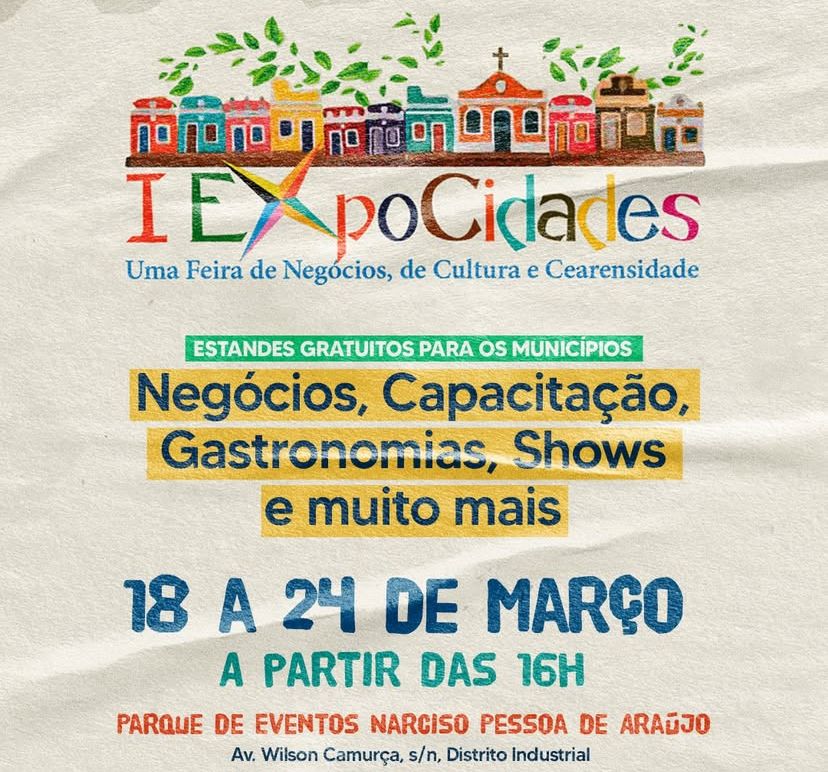 Maracanaú “Abraça o Ceará” e realiza a maior feira de municípios do Estado, trazendo como grande novidade a disponibilização de estandes gratuitos às cidades participantes. A ExpoCidades em Maracanaú acontecerá de 18 a 24 de março, a partir das 16 horas, no Parque de Eventos Narciso Pessoa de Araújo, no Distrito Industrial. O evento compreenderá encontro de negócios, artesanato, festival de gastronomia, capacitações, além de apresentações artísticas e atrações culturais regionais. A expectativa é que a primeira edição do evento reúna mais de 40 municípios de diversas regiões do Ceará. A ExpoCidades é uma realização da Prefeitura de Maracanaú, Associação dos Municípios do Estado do Ceará – Aprece e Instituto de Difusão Social do Conhecimento – Instituto Nordeste XXI com apoio institucional do Sebrae, Ministério do Turismo e Governo Federal.