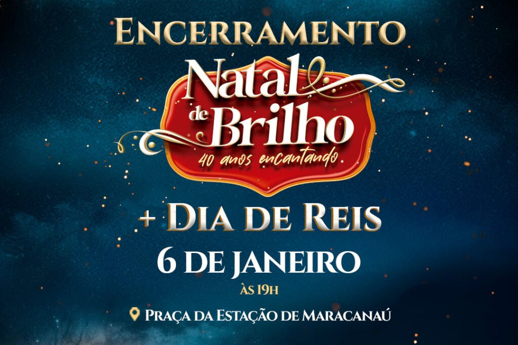 O dia 6 de janeiro é marcado pela celebração do Dia de Reis, momento em que também encerramos o ciclo natalino. Em Maracanaú, também será o dia do encerramento do Natal de Brilho, que iniciou dia 2 de dezembro. O evento contará com apresentações, reisado e encenação dos Três Reis Magos.