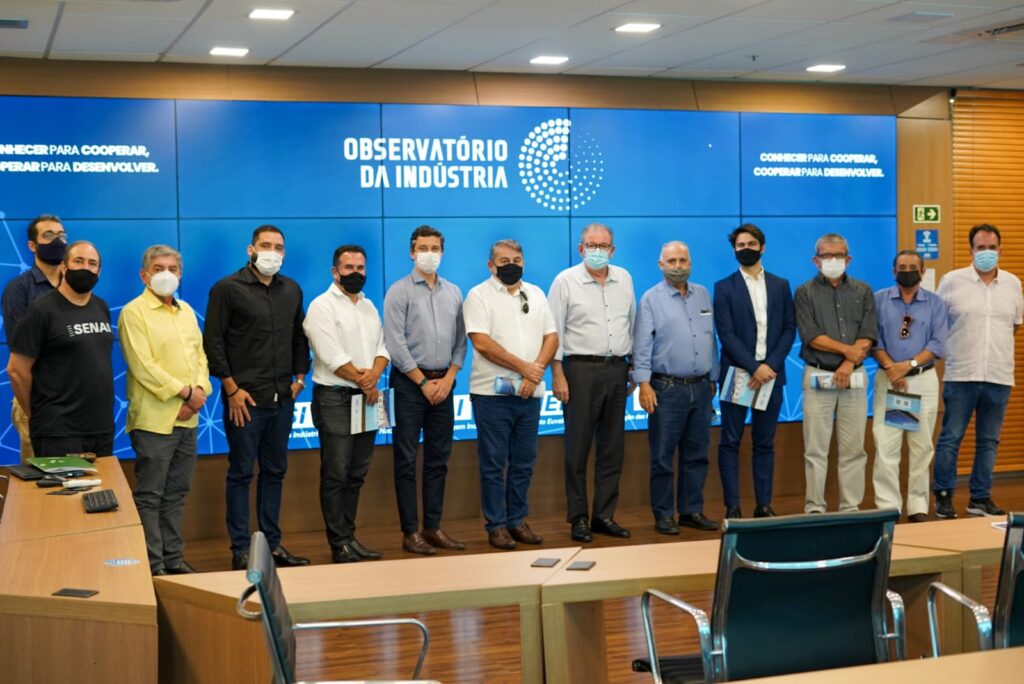O prefeito de Maracanaú, Roberto Pessoa, conheceu nesta segunda-feira, 04/10, o Observatório da Indústria da Federação das Indústrias do Estado do Ceará – FIEC. Acompanhado de comitiva, que incluiu secretários e gestores municipais, o prefeito assistiu à apresentação sobre as ações desenvolvidas pelo equipamento, como também, os serviços estratégicos que o Observatório da Indústria pode promover às gestões municipais. A ferramenta foi apresentada pelo Presidente da FIEC, Ricardo Cavalcante, pelo Diretor de Inovação e Tecnologia da FIEC e Líder do Observatório, Sampaio Filho, e pelo Gerente do Observatório da Indústria, Guilherme Muchale.